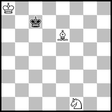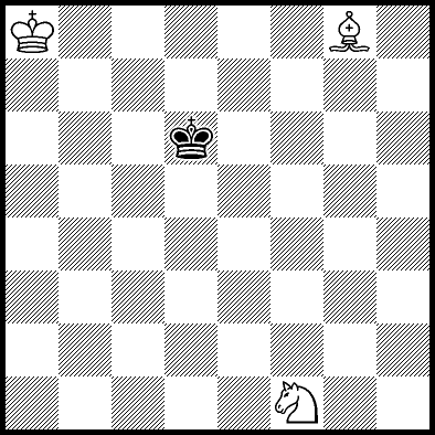 | Mate in 24 with Bh7. Worse are Kc5, Ke4 and Ne5 with mate in 25, Be6, Bf7, Ke5, Na3, Na5, Nb6, Nd6 and Ne3 with mate in 26, Kc6 and Kd6 with mate in 27, and Ke6, Nb2 and Nd2 which throw away the win. |