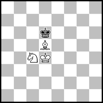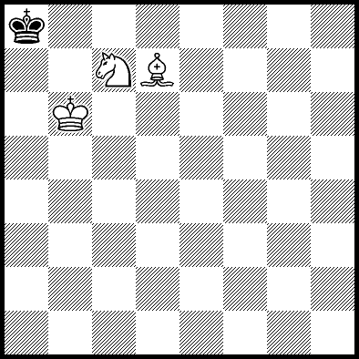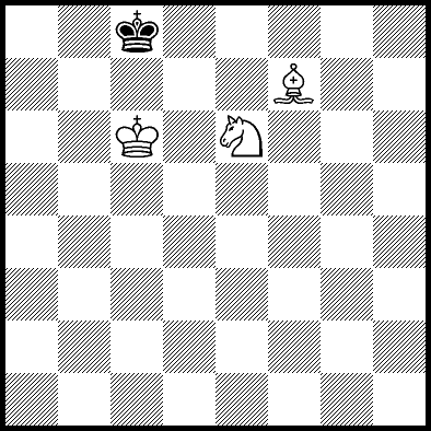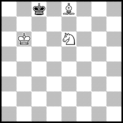 | Mate in 27 with Bf7 and Kd7. Worse are Be6, Kb7, Na5, Nd2 and Nd6 with mate in 28, Kd8, Na3, Nb2, Nb6, Ne3 and Ne5 with mate in 29, Kb8 and Kc8 with mate in 30, and Bd5 and Bh7 which throw away the win. |