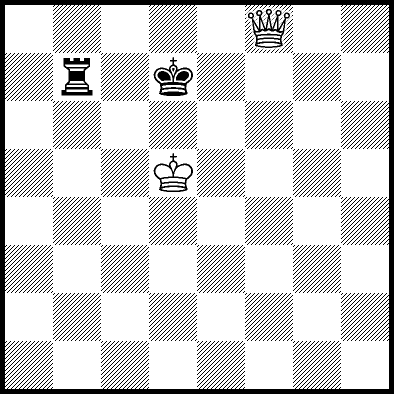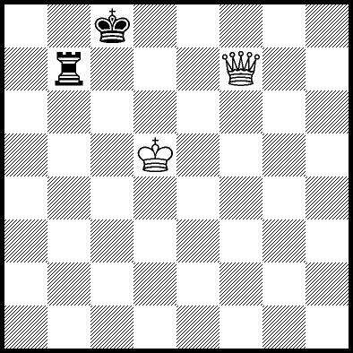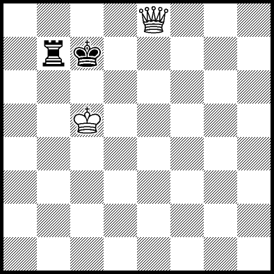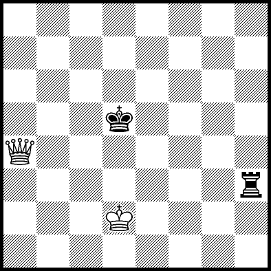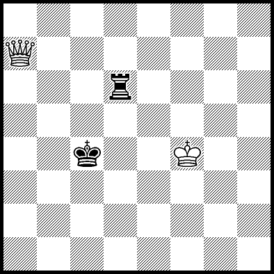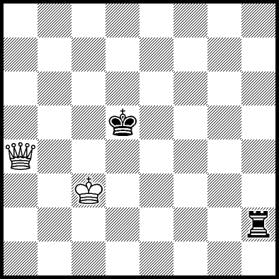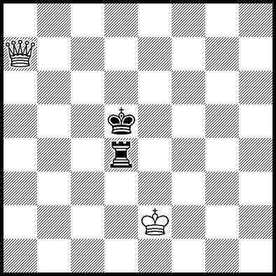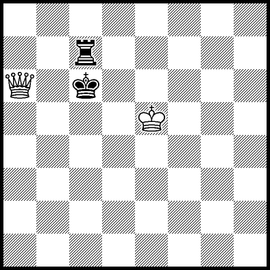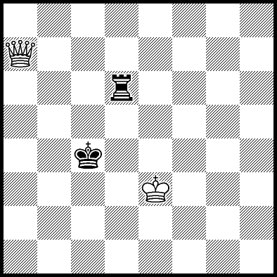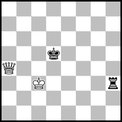 | Mate in 14 with Qf7+. Worse are Kc5 and Qf5+ with mate in 16, Qc5, Qd6+ and Qg7+ with mate in 17, Qf1 with mate in 20, Kc4 and Qf6 with mate in 21, Kd4 and Qf4 with mate in 22, Qf3 with mate in 23, Ke4, Ke5 and Qf2 with mate in 24, Qa3, Qh6 and Qh8 with mate in 26, Qa8 and Qg8 with mate in 27, and Qb4, Qb8, Qc8+, Qd8+, Qe7+ and Qe8+ which throw away the win. |