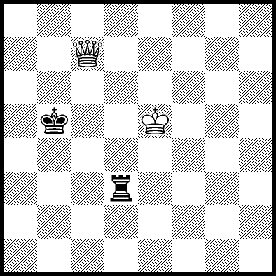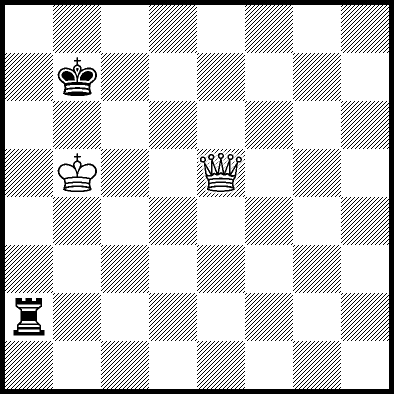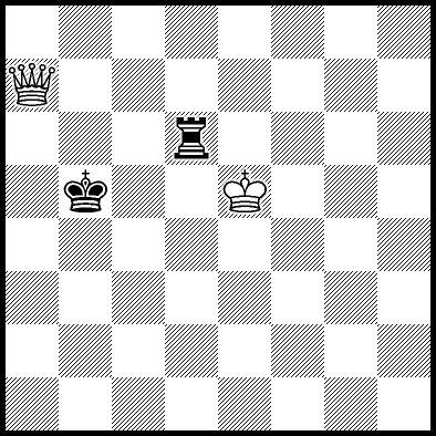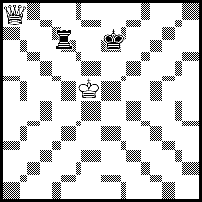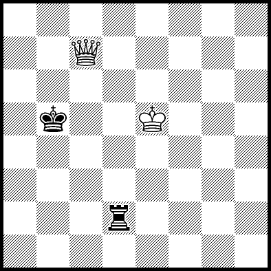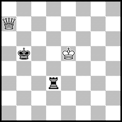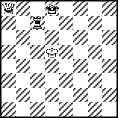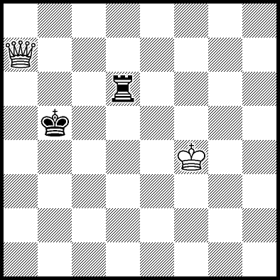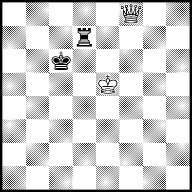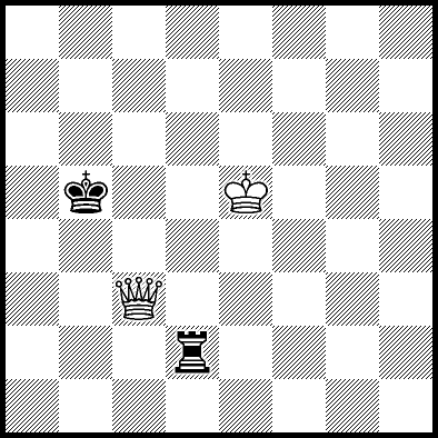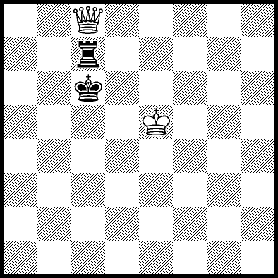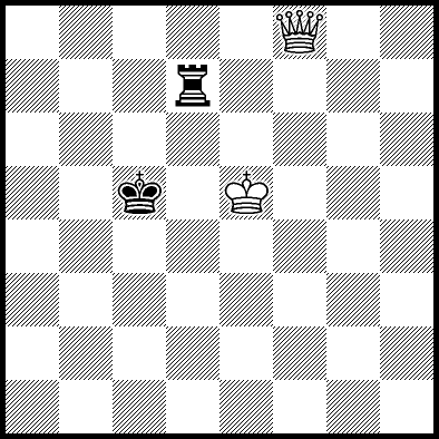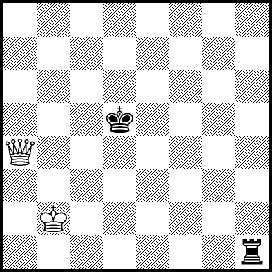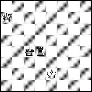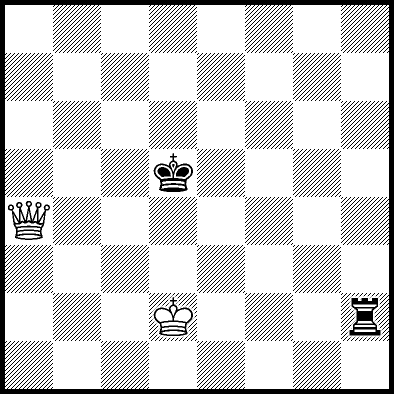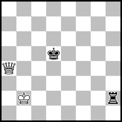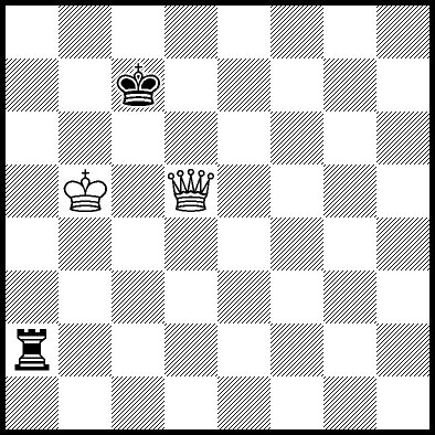 | White mates in 26 after Rd6. Worse are Rd3+ and Rd5 when White mates in 21, Rd1, Rd2, Rg4 and Rh4 when White mates in 8, Kd5, Rd8 and Rf4 when White mates in 7, Kb5, Rd7 and Re4+ when White mates in 6, and Kb3, Kb4 and Kc3 when White mates in 5. |