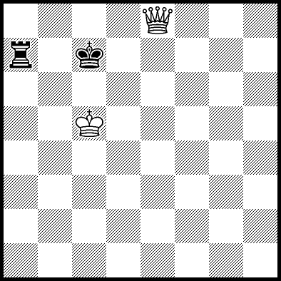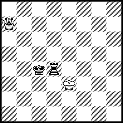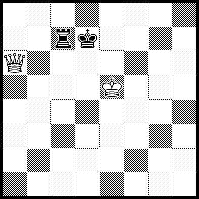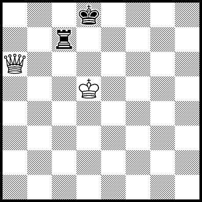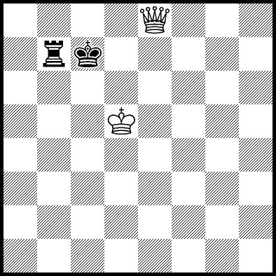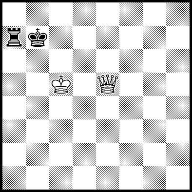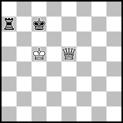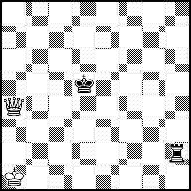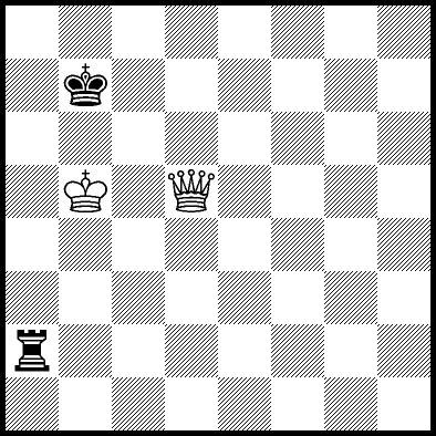 | Mate in 17 with Qa8+. Worse are Qa3, Qa5 and Qf6+ with mate in 18, Qb6 with mate in 19, Qb5 with mate in 20, Ke5 and Qa4 with mate in 22, Kd4 and Kd6 with mate in 23, Ke4, Qa1 and Qa2 with mate in 24, Qf1, Qg6 and Qh6 with mate in 25, Qe2 with mate in 27, Qe6 with mate in 31, and Ke6, Qa7, Qb7, Qc4, Qc6, Qc8+, Qd3 and Qd6+ which throw away the win. |