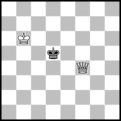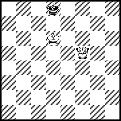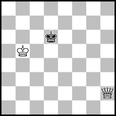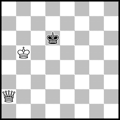 | Mate in 12 with Kc5. Worse are Qc6+ with mate in 16, Qe7+ with mate in 17, Qa4 and Qe5+ with mate in 18, Kc4 and Qf7+ with mate in 19, Kd4, Qe1, Qe3, Qe4, Qe6 and Qf8 with mate in 20, Ke6, Qe2, Qg6, Qg8 and Qh8 with mate in 21, Ke5 and Qa8 with mate in 22, Ke4 with mate in 24, and Qb5, Qb8+, Qc8+, Qd7+, Qd8+ and Qh5 which throw away the win. |
