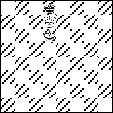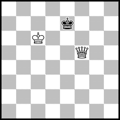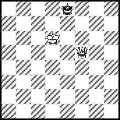 | Mate in 11 with Qe5+. Worse are Qe7+ with mate in 12, Kb5 and Qc6+ with mate in 13, Qf7+ with mate in 14, Qb5 with mate in 15, Qe1 with mate in 16, Qe6 with mate in 17, Kc4 with mate in 18, Kb4, Kd5, Qe3 and Qe4 with mate in 19, Qf8, Qg6 and Qh8 with mate in 21, Qe2 with mate in 22, Kd4 and Qg8 with mate in 23, and Qa4, Qa8, Qb8+, Qc8+, Qd7+, Qd8+ and Qh5 which throw away the win. |
