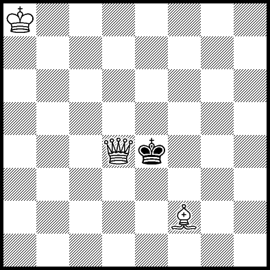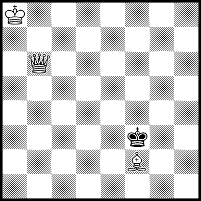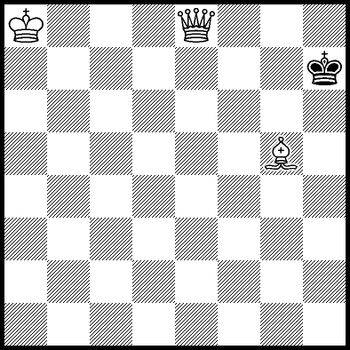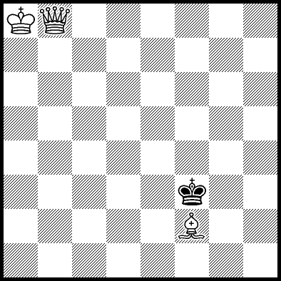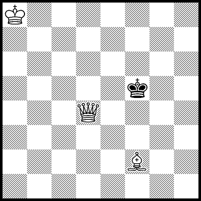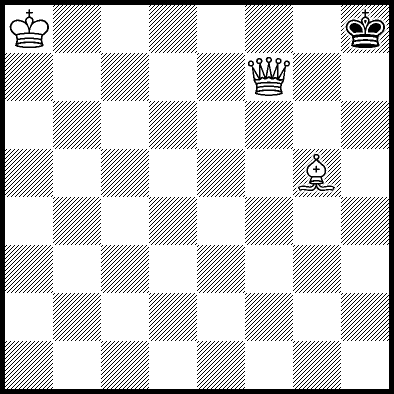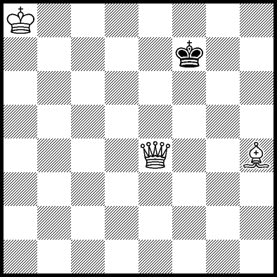 | Mate in 8 with Ba7, Bb6, Bc5, Bd4, Be1, Bg1, Bg3, Bh4, Qa7, Qb2, Qb6, Qf8+, Qg3+ and Qh2. Worse are Ka7, Kb7 and Qb3+ with mate in 9, Be3, Qb1, Qb4, Qb5, Qb7+, Qc7, Qc8, Qd6, Qd8, Qe5, Qe8, Qg8 and Qh8 with mate in 10, and Qf4+ which throws away the win. |