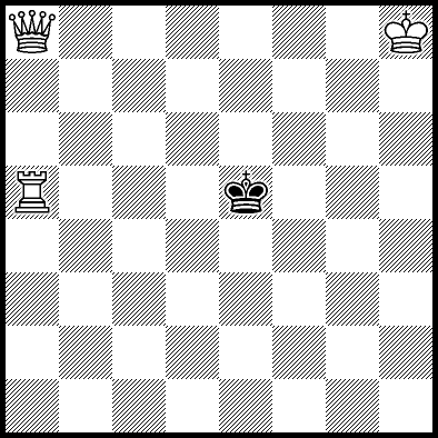 | Mate in 2 with Rb5+. Worse are Kg7, Kg8, Kh7, Qc7, Qc8, Rc5, Rd8, Re5, Rf5, Rg5 and Rh5 with mate in 3, Qa6, Qa8, Qb5+, Qb6+, Qb7+, Qc1, Qc2, Qc5+, Qd6+, Qd7, Qe6, Qe8, Qf6, Qg6, Qh6, Rd1, Rd2, Rd3, Rd4+, Rd6 and Rd7 with mate in 4, Ra5 with mate in 8, Qa4+ with mate in 14, Qc3+ with mate in 15, and Qc4+ with mate in 16. |