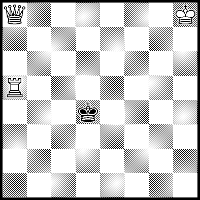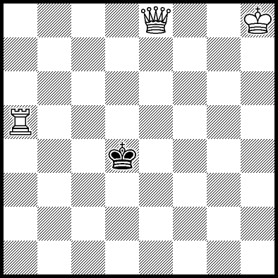 | Mate in 4 with Rd5+. Worse are Qa4, Qb5+, Qd7+, Qe5, Qe6, Ra3+, Ra4, Ra7 and Rc5 with mate in 5, Kg7, Kg8, Kh7, Qa8, Qb8, Qc6, Qc8, Qd8+, Qe1, Qe7, Qf7, Qf8, Qg6+, Qg8, Qh5, Ra1, Ra2, Ra6, Ra8, Rb5, Re5, Rf5, Rg5 and Rh5 with mate in 6, Qe2+ with mate in 15, and Qe3+ and Qe4+ with mate in 16. |