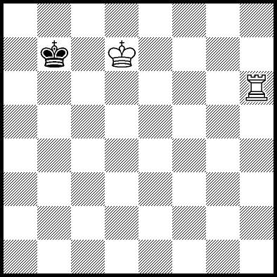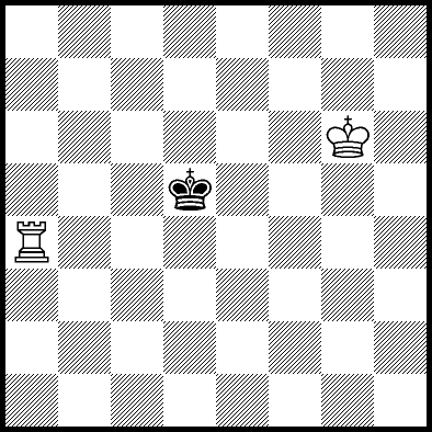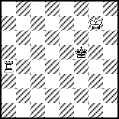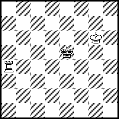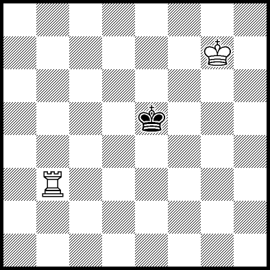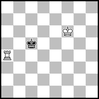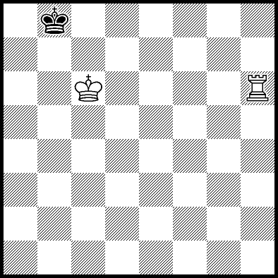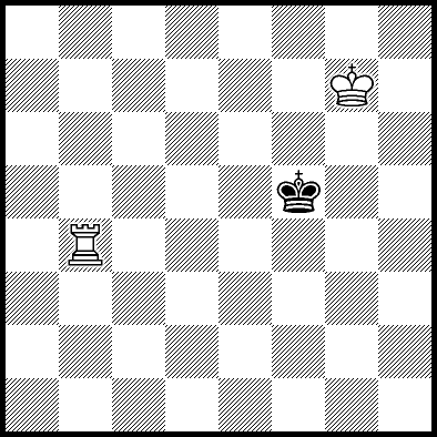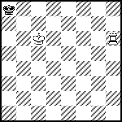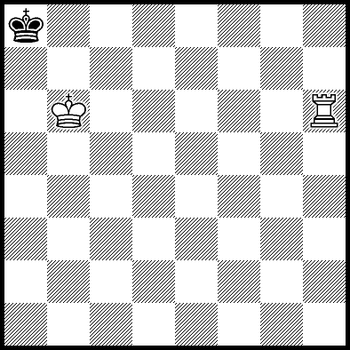 | Mate in 3 with Kc6. Worse are Rb6+ with mate in 4, Kd6, Kd8, Ra6, Rc6, Rd6, Re6, Rf6, Rg6, Rh1, Rh2, Rh3, Rh4, Rh5, Rh7 and Rh8+ with mate in 5, and Ke6, Ke7 and Ke8 with mate in 7. |