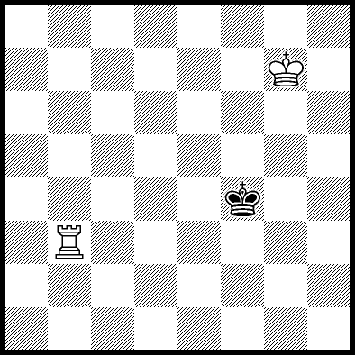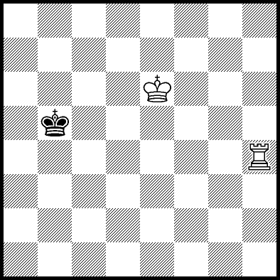| Mate in 12 with Kf5 and Kf6. Worse are Kf7, Kg5, Kg7, Ra8, Rb4, Rf4, Rg4 and Rh4 with mate in 14, Kh5, Kh6, Kh7, Ra1, Ra2, Ra3, Ra5+, Ra6 and Ra7 with mate in 15, and Rc4, Rd4+ and Re4 which throw away the win. |