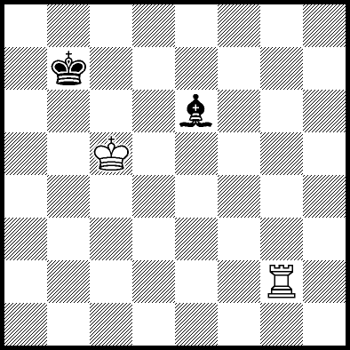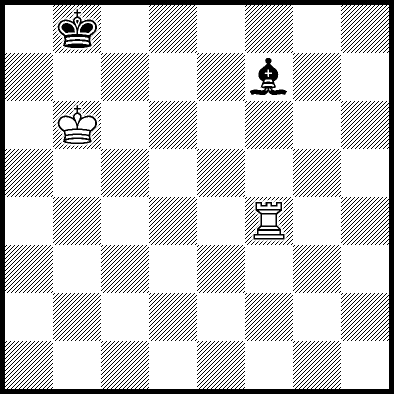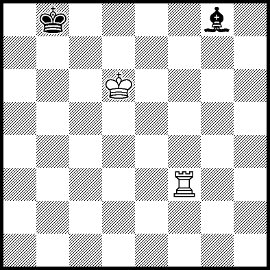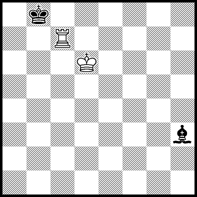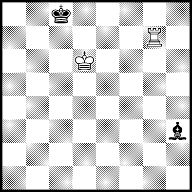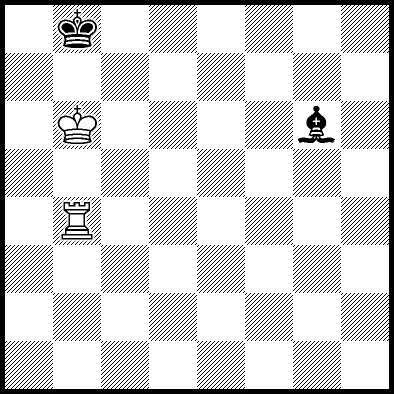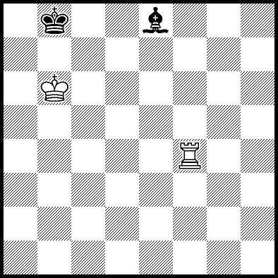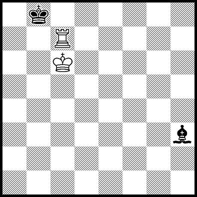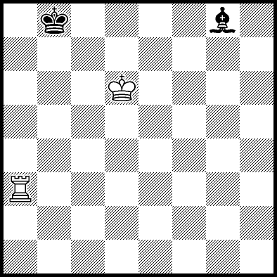 | Mate in 11 with Rc5 and Rh5. Worse are Ra5, Rb5 and Rg5 with mate in 12, Re8 and Rf5 with mate in 13, Re1 and Re4 with mate in 14, Re2 and Re3 with mate in 15, and Ka5, Ka6, Ka7, Kb5, Kb7, Rd5+, Re6+ and Re7 which throw away the win. |