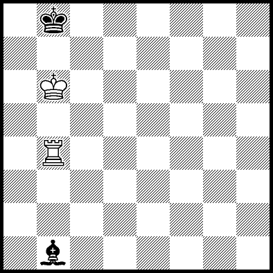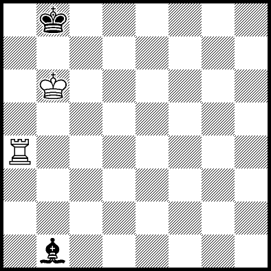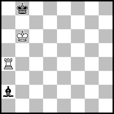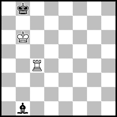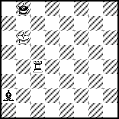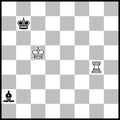 | Mate in 27 with Kc5. Worse are Kc6, Kc7, Kd7, Ke5, Ke7, Ra4+, Rb4, Rc4, Rd4, Re4, Rf1, Rf2, Rf3, Rf5, Rf6, Rf7, Rf8, Rg4 and Rh4 which throw away the win. |