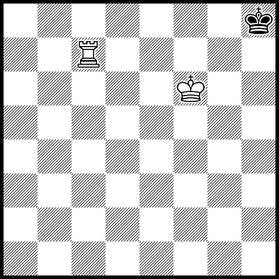 | Mate in 22 with Rc7+. Worse are Kc5, Kc6, Kd5, Ke5, Ke7, Ra7, Rb7, Rd7, Re7, Rf7, Rg1, Rg2, Rg3, Rg4, Rg5, Rg6, Rg8+ and Rh7 which throw away the win. |