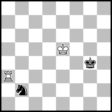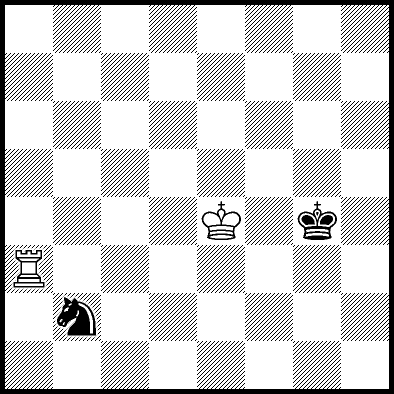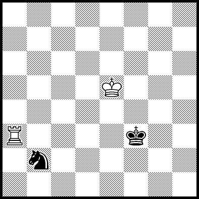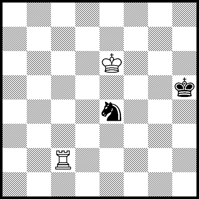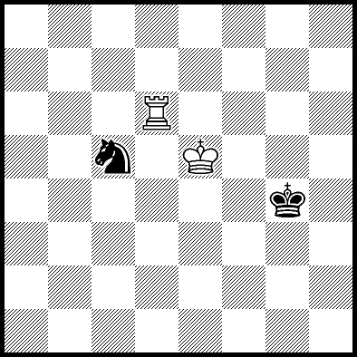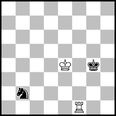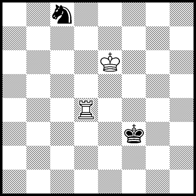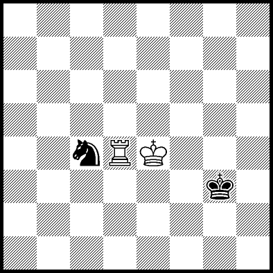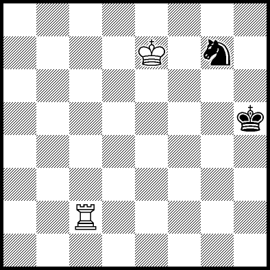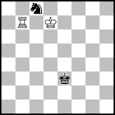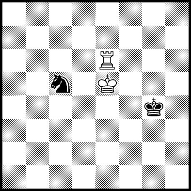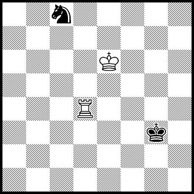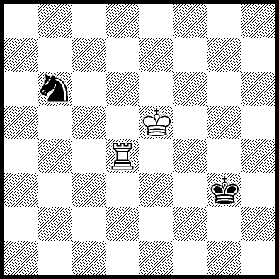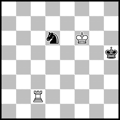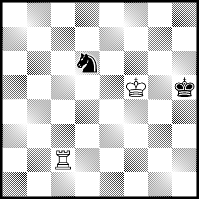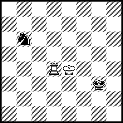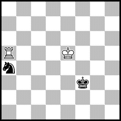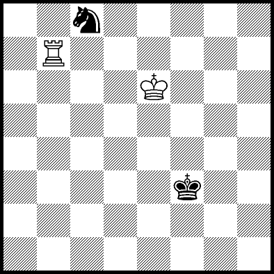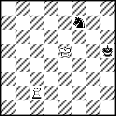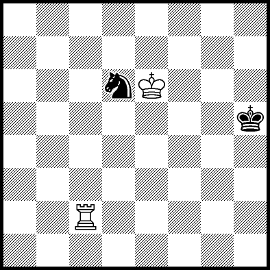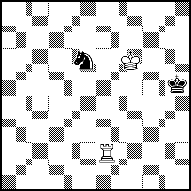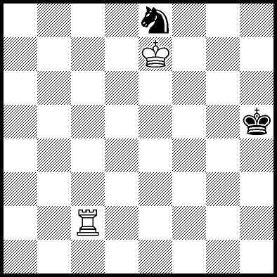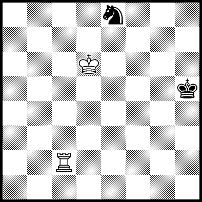 | Mate in 11 with Ke6. Worse are Kc7, Ke7, Re4, Rf4, Rg4 and Rh4 with mate in 13, Kd8, Ke8, Ra1, Ra2, Ra3, Ra5+, Ra6, Ra7 and Ra8 with mate in 14, Kc8 with mate in 15, and Rb4, Rc4+ and Rd4 which throw away the win. |