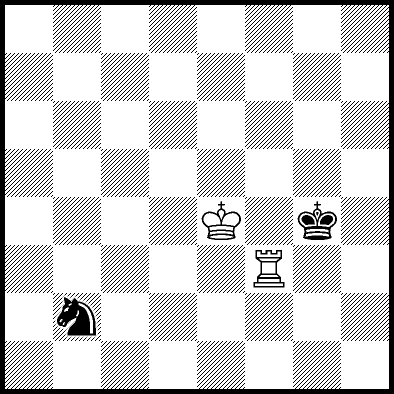 | Mate in 26 with Ke4. Worse are Kd4, Kd5, Kd6, Ke6, Kf6, Ra1, Ra2, Ra4+, Ra5, Ra6, Ra7, Ra8, Rb3, Rc3, Rd3, Re3, Rf3, Rg3+ and Rh3 which throw away the win. |
