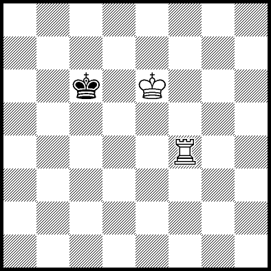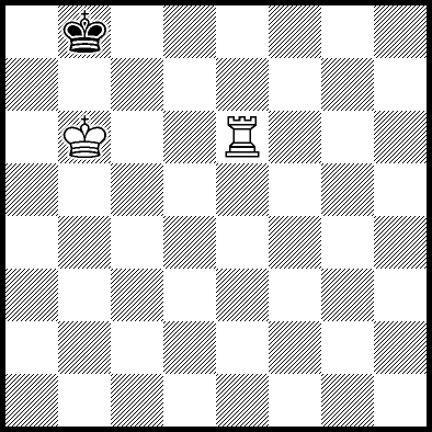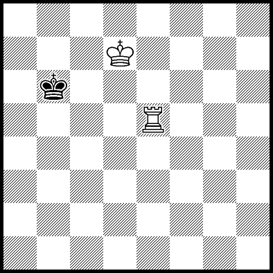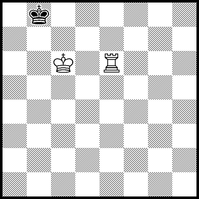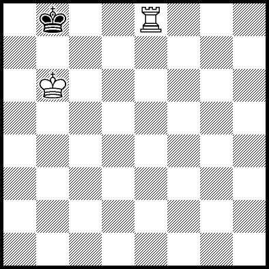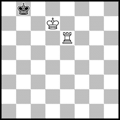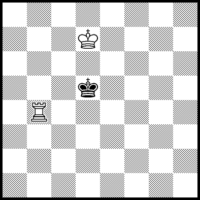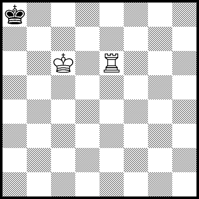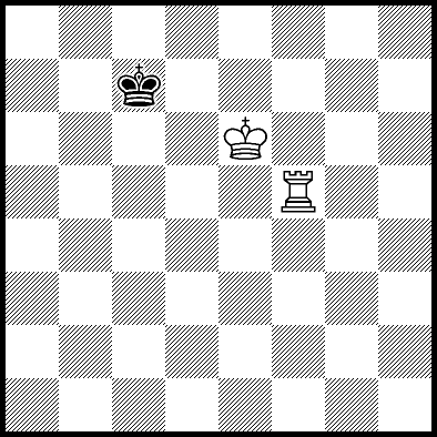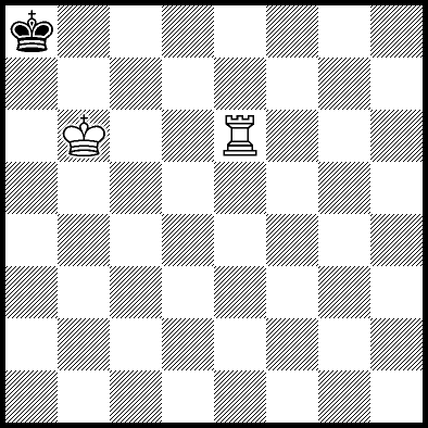 | Mate in 18 with Kd7 and Rb7. Worse are Kd5, Kd6, Rb3+ and Rb6 with mate in 19, Ra4 and Rc4 with mate in 21, and Ke5, Ke7, Kf5, Kf6, Kf7, Rb1, Rb2, Rb5, Rb8, Rd4, Re4, Rf4+, Rg4 and Rh4 which throw away the win. |