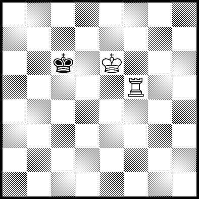 | Mate in 31 with Ke5. Worse are Re5 with mate in 33, and Ke7, Kf7, Kg6, Kg7, Ra6, Rb6, Rc6, Rd6, Re1, Re2, Re3, Re4+, Re7 and Re8 which throw away the win. |