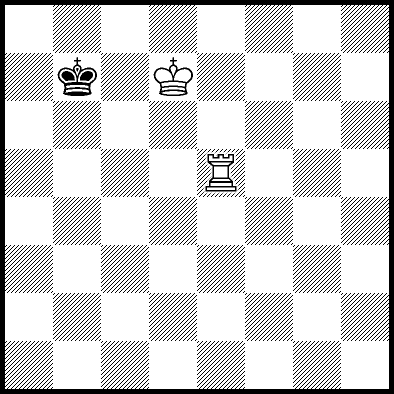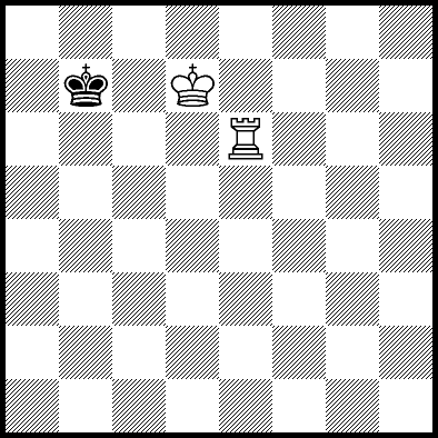 | Mate in 4 with Re6. Worse are Rb5+ with mate in 5, Kd6, Ra5, Rc5, Rd5, Re1, Re2, Re3, Re4, Re7, Re8, Rf5, Rg5 and Rh5 with mate in 6, and Kd8, Ke6, Ke7 and Ke8 with mate in 8. |
