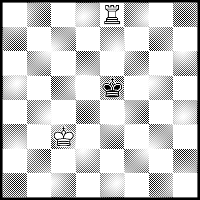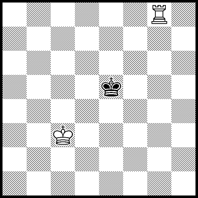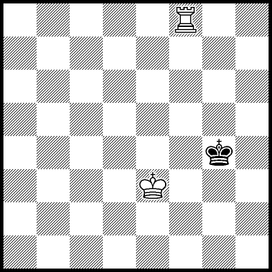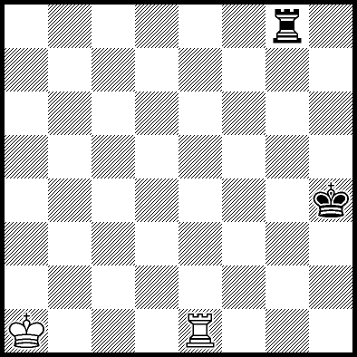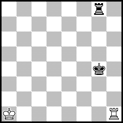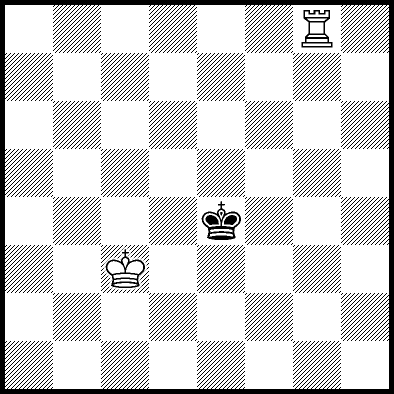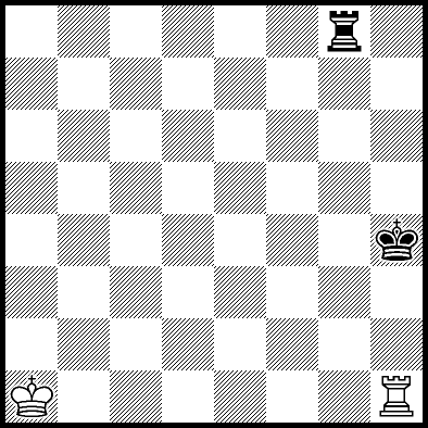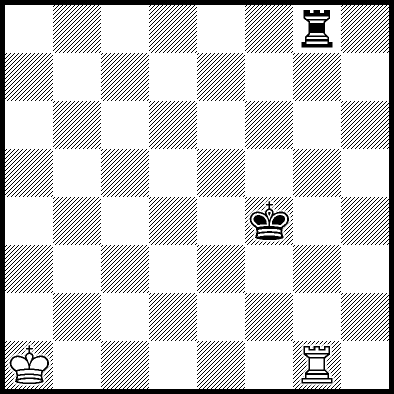 | Mate in 12 with Kc4, Kd3, Kd4, Re1, Re2 and Re7. Worse are Kb3, Kb4, Kc2 and Kd2 with mate in 13, Kb2, Ra8, Rb8, Rc8, Rd8, Re6, Rf8+, Rg8 and Rh8 with mate in 14, and Re3, Re4+ and Re5 which throw away the win. |