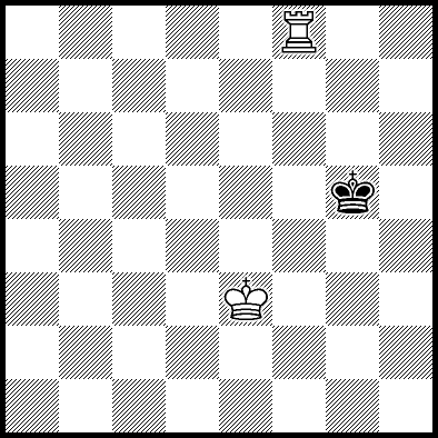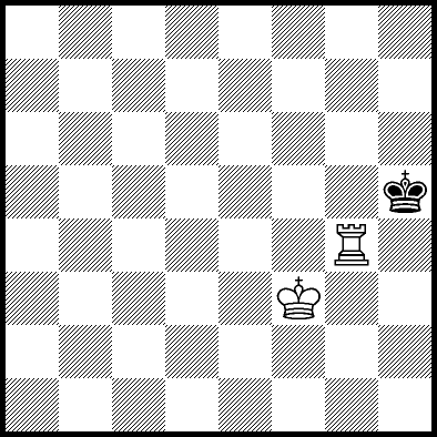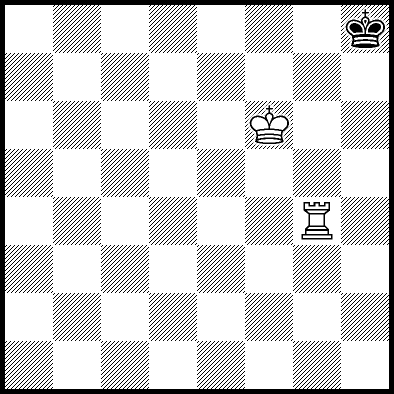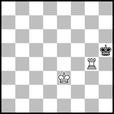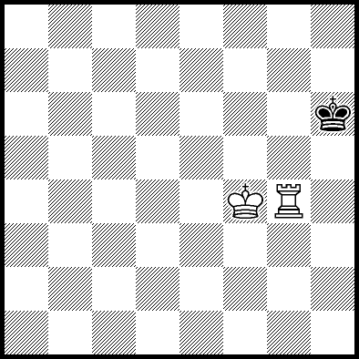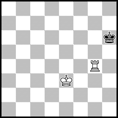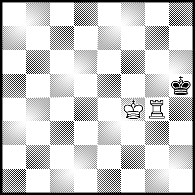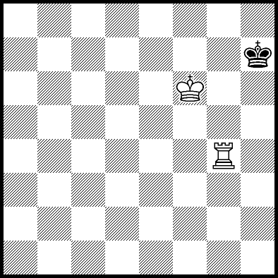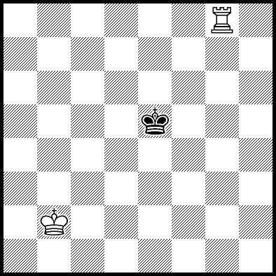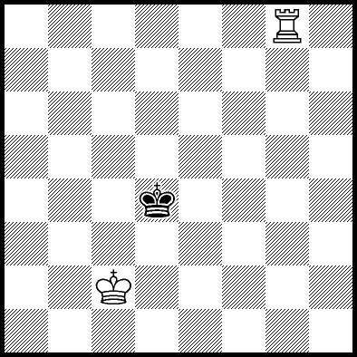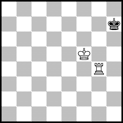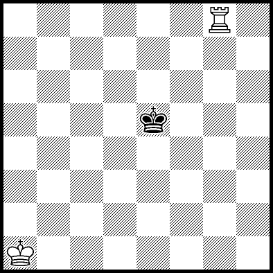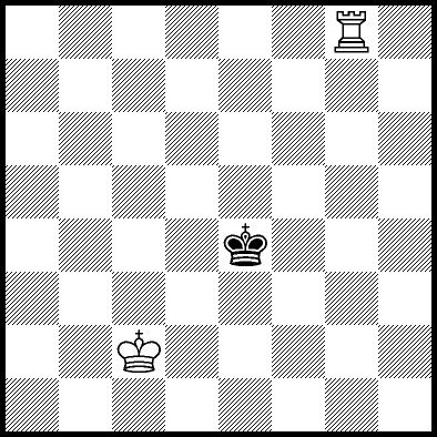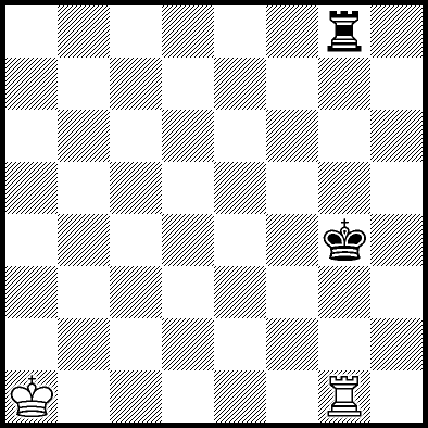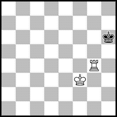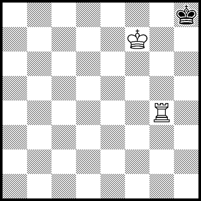 | Mate in 11 with Kd4, Ke3 and Re4. Worse are Kc4, Ke2, Re1, Re2, Re3 and Re7 with mate in 12, Kc2, Kc3, Kd2, Ra8, Rb8, Rc8, Rd8, Rf8+, Rg8 and Rh8 with mate in 13, and Re5+ and Re6 which throw away the win. |