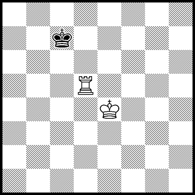 | Mate in 10 with Rd5. Worse are Ke5 and Rd4 with mate in 11, Kd4, Ke3, Kf3, Kf4, Kf5, Ra2, Rb2, Rd1, Rd3, Rd8, Re2, Rf2, Rg2 and Rh2 with mate in 12, Kd3 and Rc2+ with mate in 13, and Rd6+ and Rd7 which throw away the win. |