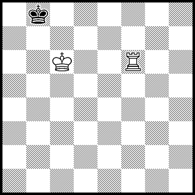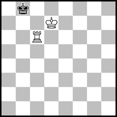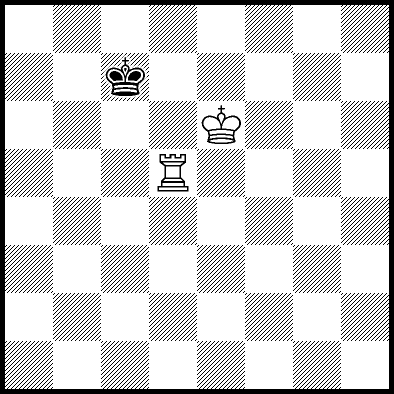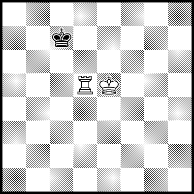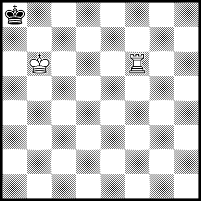 | Mate in 5 with Kd7. Worse are Kd6 and Ke7 with mate in 6, Kd5, Ke5, Rc5 and Rd6 with mate in 7, Kf7, Ra6, Rb6+, Rc1, Rc2, Rc3 and Rc4 with mate in 8, Kf5 and Kf6 with mate in 9, and Rc7 and Rc8+ which throw away the win. |