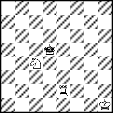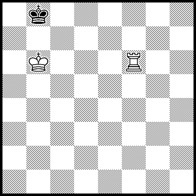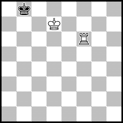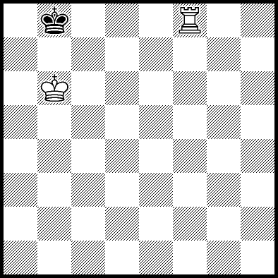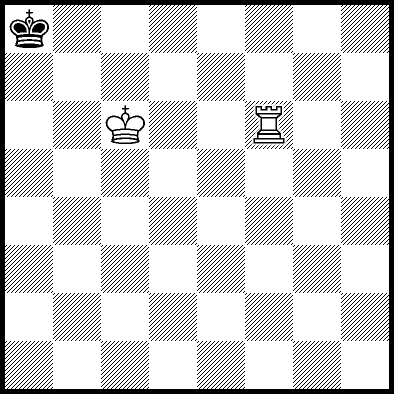 | Mate in 3 with Kc6. Worse are Rb6+ with mate in 4, Kd6, Kd8, Ra6, Rc6, Rd6, Re6, Rf1, Rf2, Rf3, Rf4, Rf5, Rf7, Rf8+, Rg6 and Rh6 with mate in 5, and Ke6, Ke7 and Ke8 with mate in 7. |