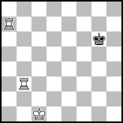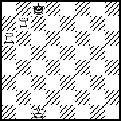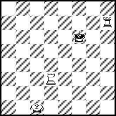 | Mate in 5 with Rb5+. Worse are Kc2, Kd2, Ra5+, Ra6, Rb6 and Re3 with mate in 6, Kb1, Kb2, Kd1, Ra1, Ra2, Ra4, Ra8, Raa3, Rab7, Rb1, Rb2, Rb4, Rb8, Rba3, Rbb7, Rc3, Rc7, Rd3, Re7, Rf3+, Rf7+, Rg3, Rg7, Rh3 and Rh7 with mate in 7, and Rd7 with mate in 8. |